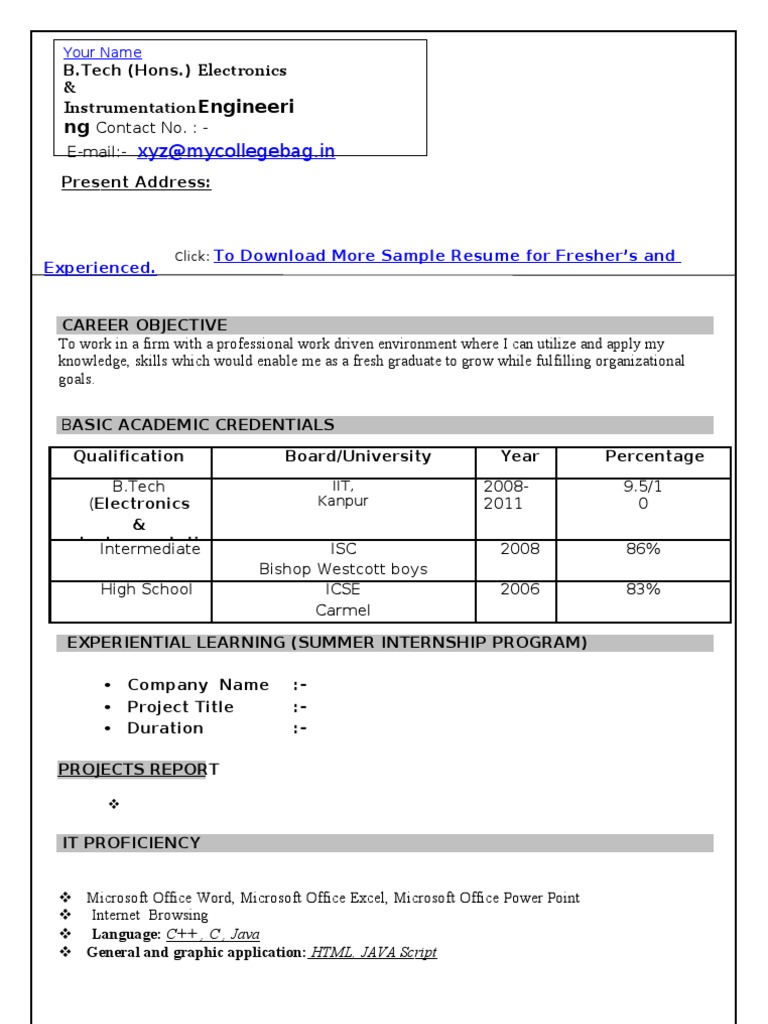 B tech fresher … 48 new b tech fresher resume format doc | pelaburemasperak. Cv format for freshers is bit different then experienced individuals as freshers have no or very less experience, so focus is on your 4 cv format for freshers. Freshers with a college background are especially likely to have a wide array of experiences that have helped them develop skills relevant. Figuring out which is the best resume format can be difficult if you're a fresher. Resume format for mca freshers. You just need to click on the free download link and open the file in ms word. What is the difference between cv and a resume. A lot of companies today are looking for fresh graduates, especially in sales and marketing, and in countries with a strong it hub, like those in the business process outsourcing or bpos. All you need now is a great cv suitable for freshers to get you started. Resume making tips with sample resume model templates. Some employers will request applicants only to submit their this is a fresher resume designed explicitly for fresh civil engineering graduates. The resume of an hr fresher should represent the enthusiasm to get an hr job. Where can i find resume format for fresher's?