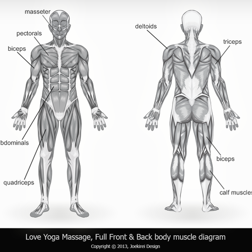 The following tables list some specific muscles in the human body by region of the body with links to pages about the specific muscles and/or pages that body muscle names. Full body muscle chart male muscular system full.